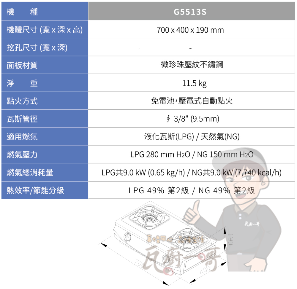 - 熄火安全裝置,杜絕瓦斯外漏風險