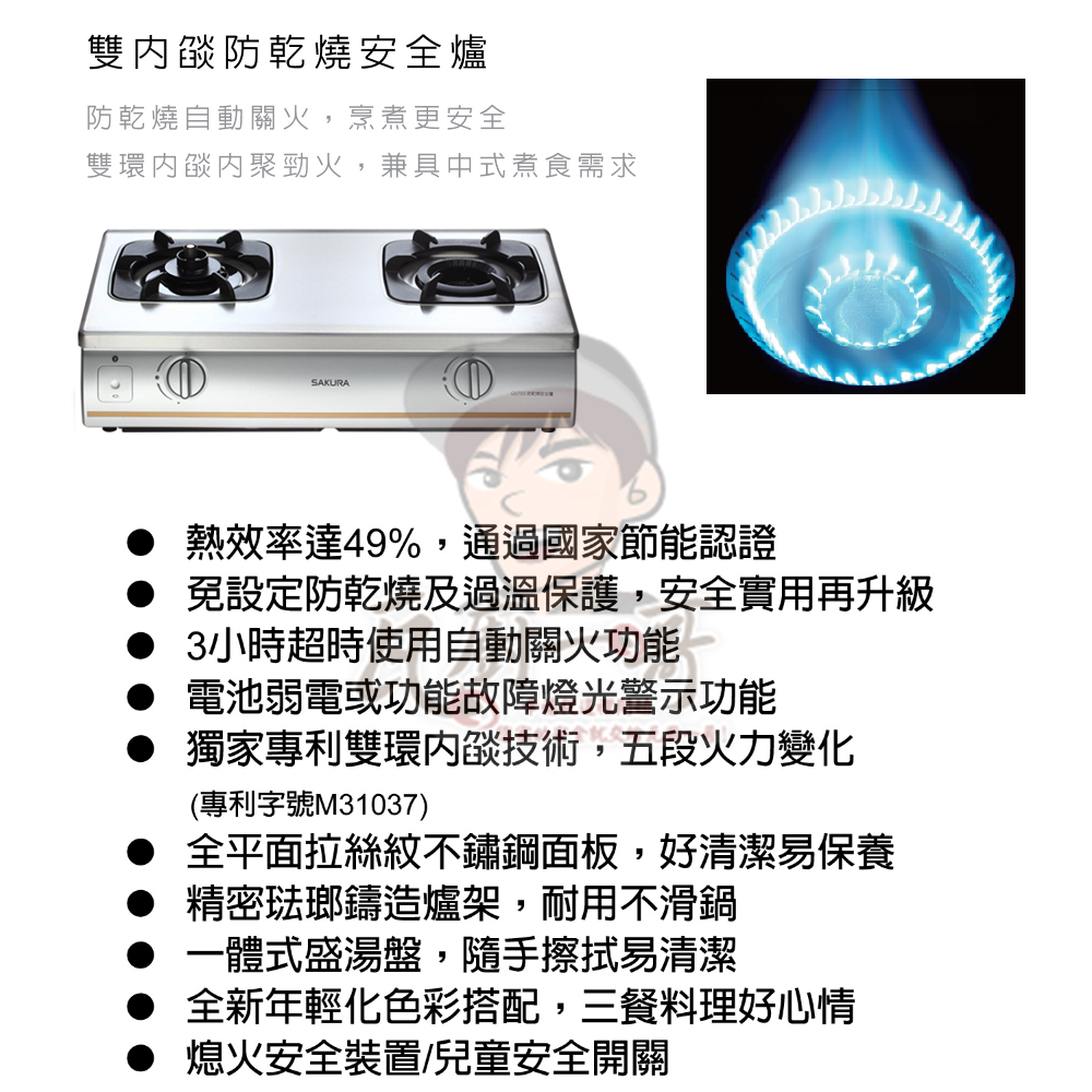 - 專利雙環內焰技術,火焰內聚更省能