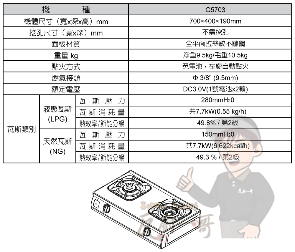 - 熄火安全裝置,杜絕瓦斯外漏風險