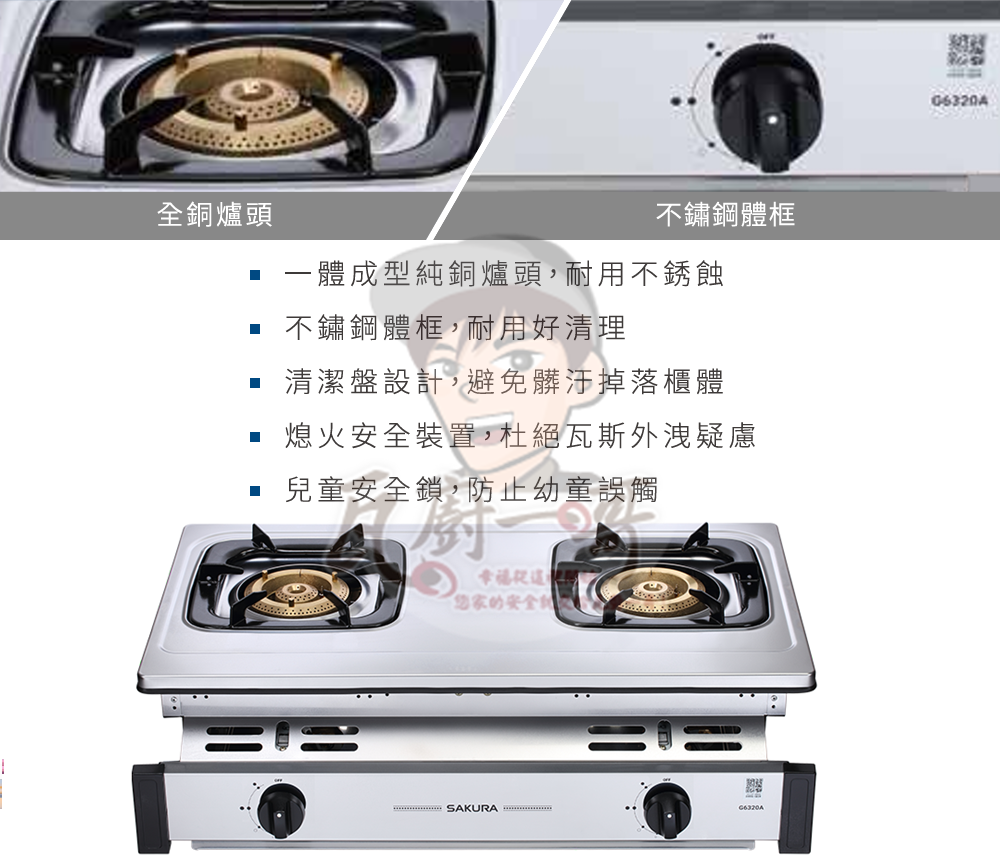 - 全銅爐頭材質,爐頭更耐用