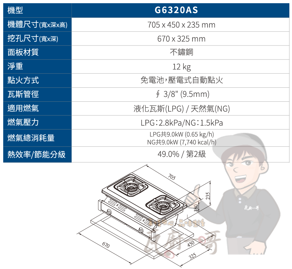 - 熄火安全裝置,杜絕瓦斯外漏風險