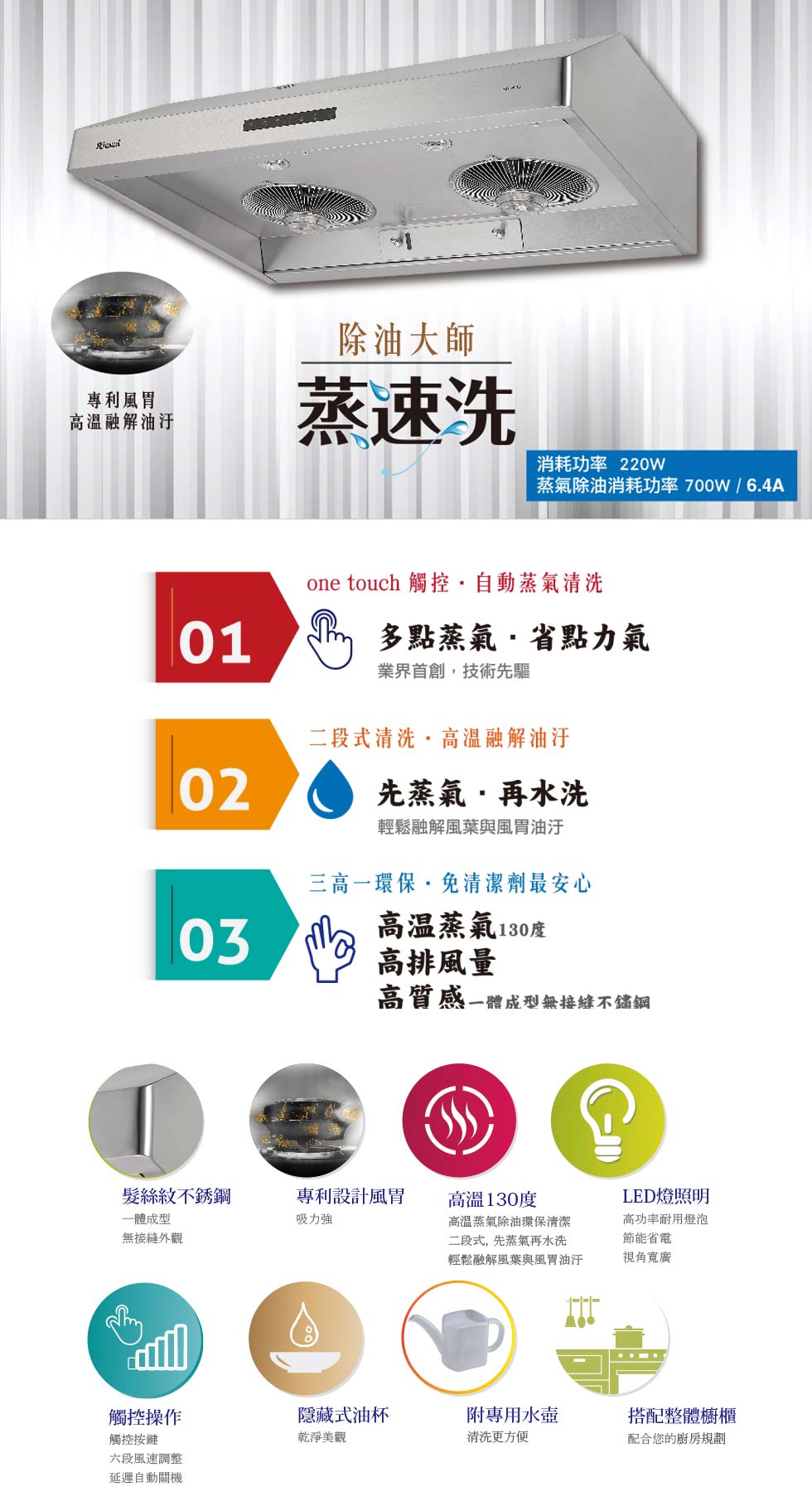 220 (蒸氣除油700W) |