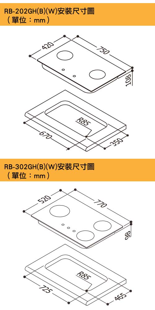 | 挖孔尺寸 mm W×D | 725×465(R85) |