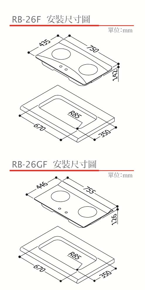 | 挖孔尺寸 mm W×D | 670×350(R85) |
