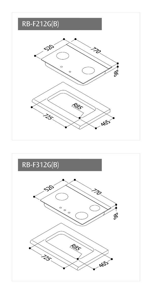 | 挖孔尺寸 mm W×D | 725×465(R85) |