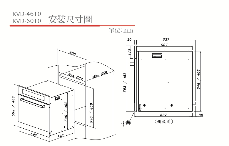 | 挖孔尺寸 mm W×H×D | 560×590×550 |