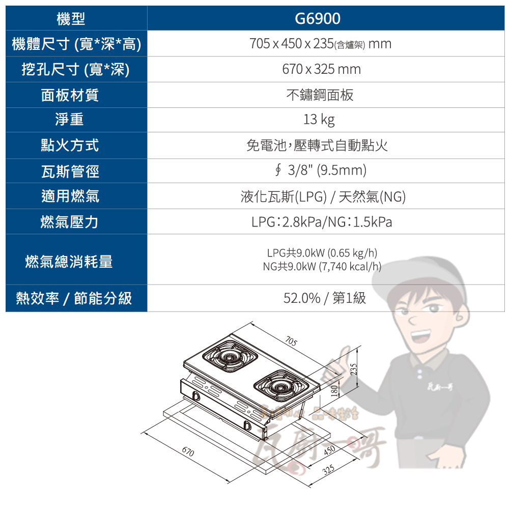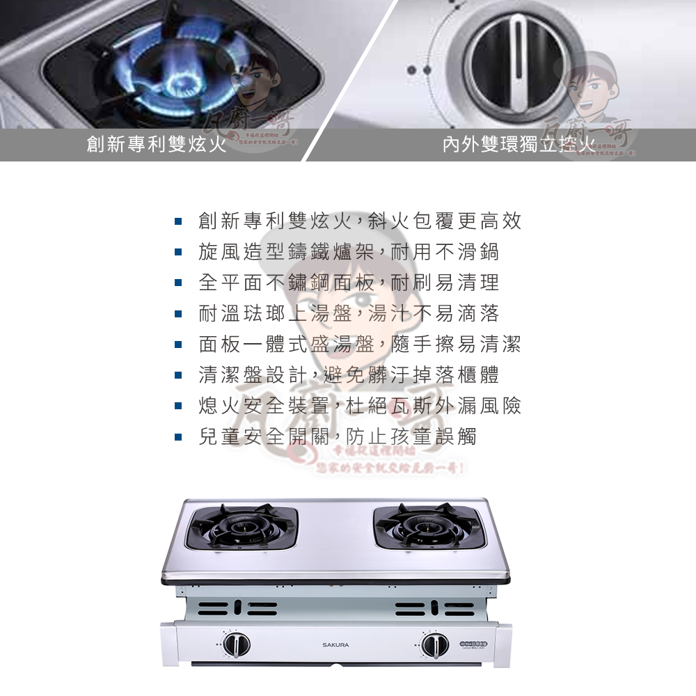 - 熄火安全裝置,杜絕瓦斯外漏風險