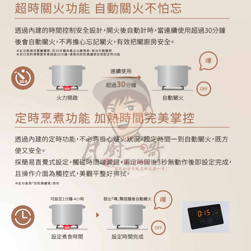 - 超時關火功能,自動關火不怕忘
