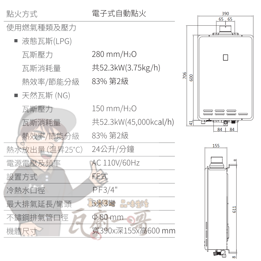 24L加熱能力,浴缸適用智能恆溫,不會忽冷忽熱
