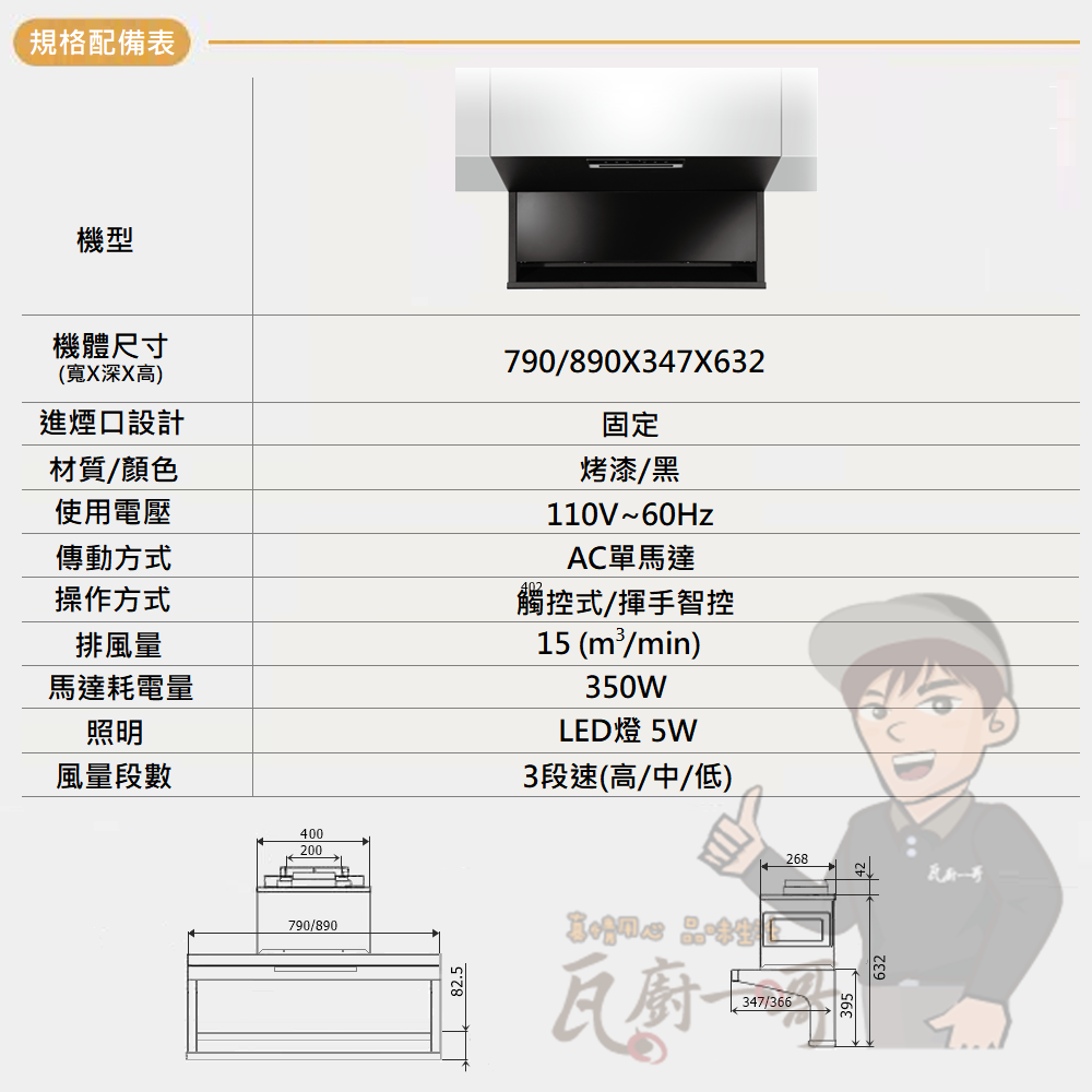 永久免費送油網,吸力永保如新進煙口距離檯面僅32cm,快速排煙