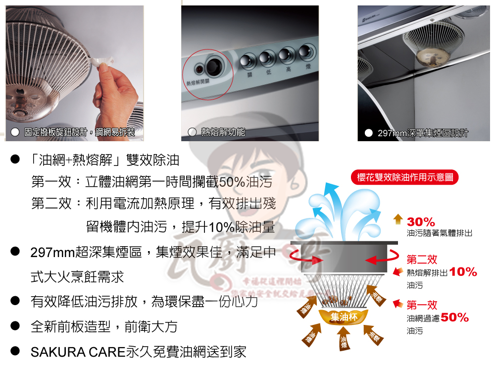 永久免費送油網,確保吸力永如新30公分超深集煙區,中式爆炒油煙不外漏