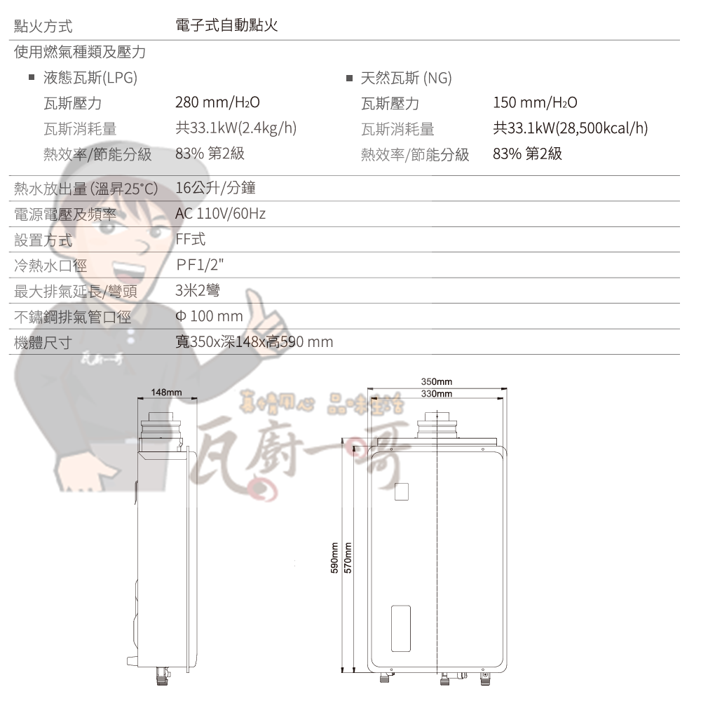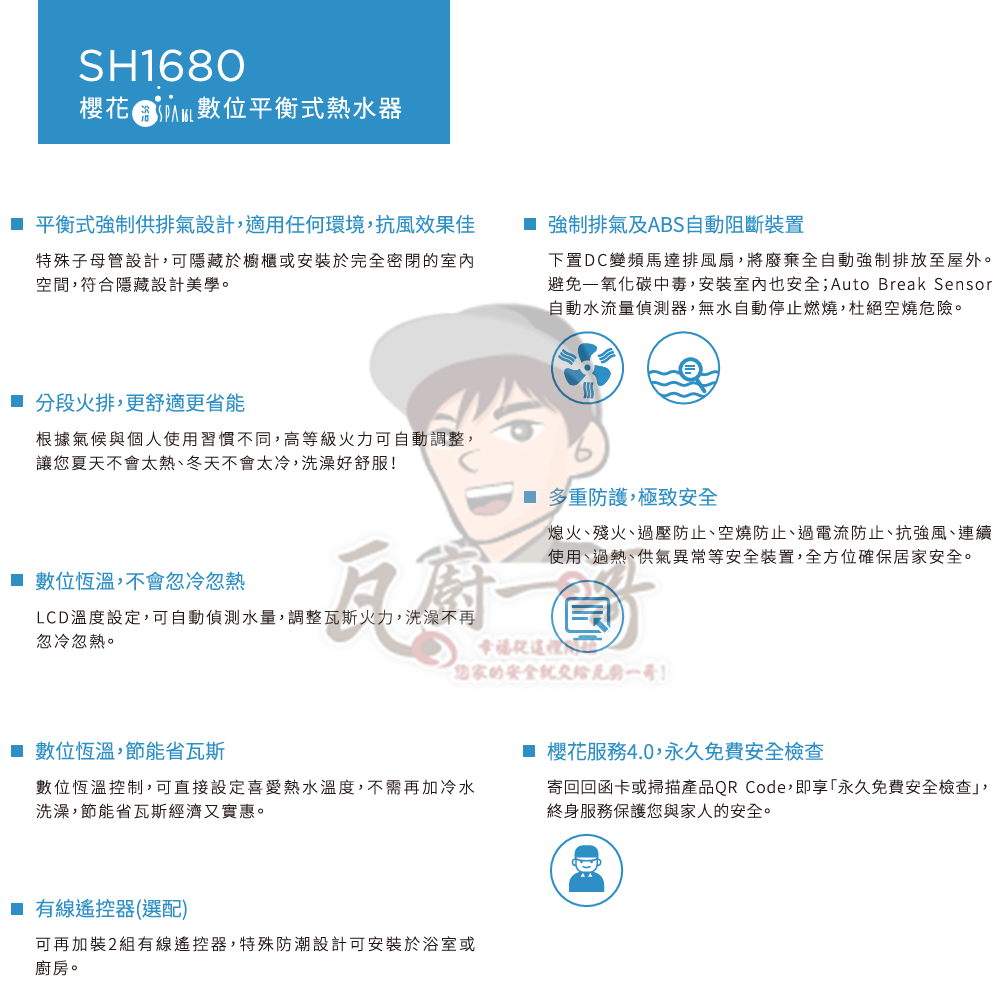 SH1680 16L 供排平衡智能恆溫熱水器(浴室、櫥櫃專用)