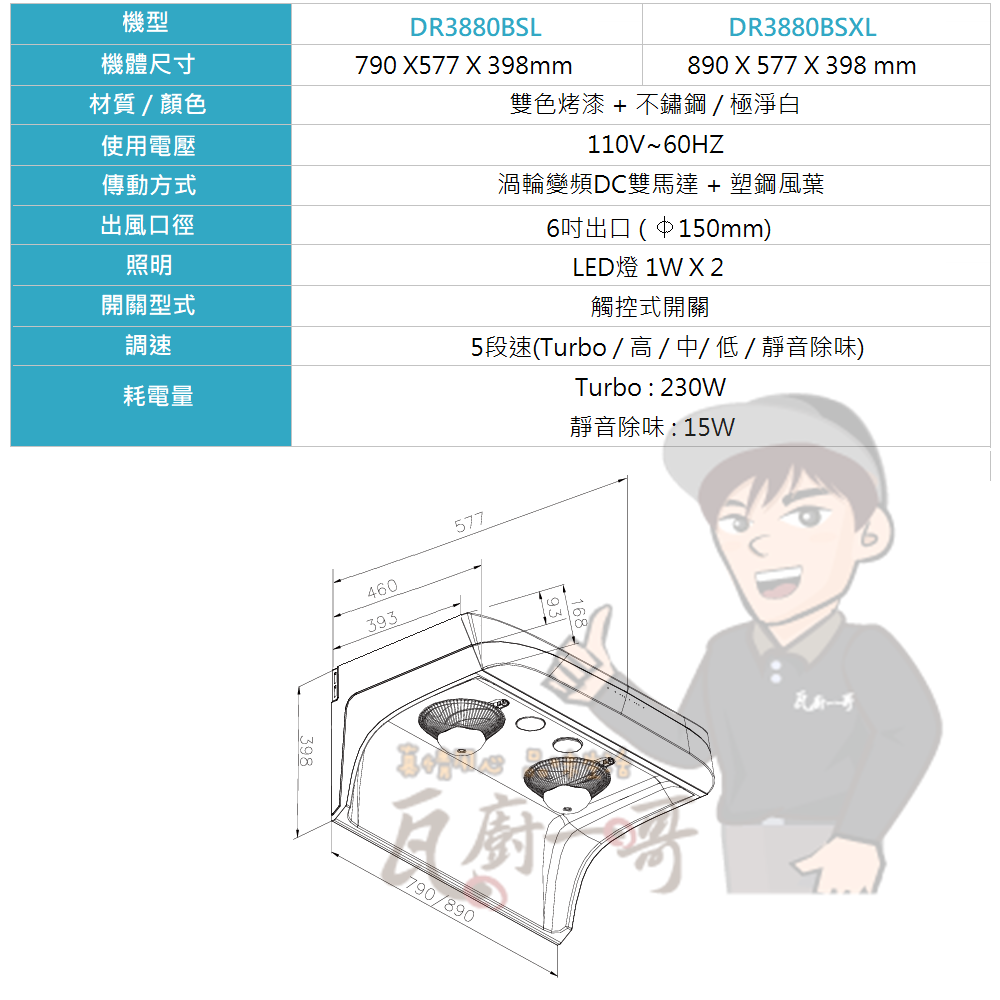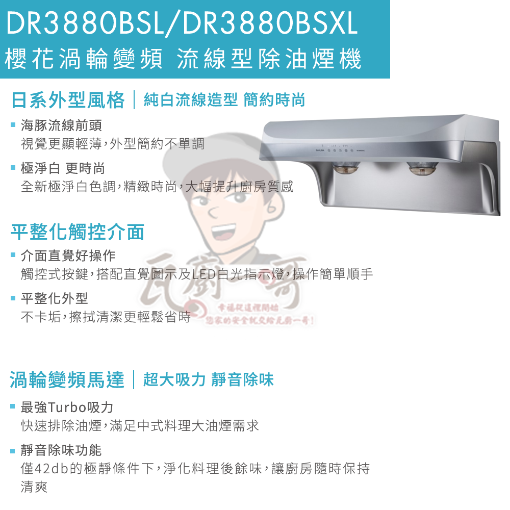 DR3880B 流線型除油煙機 -渦輪變頻系列