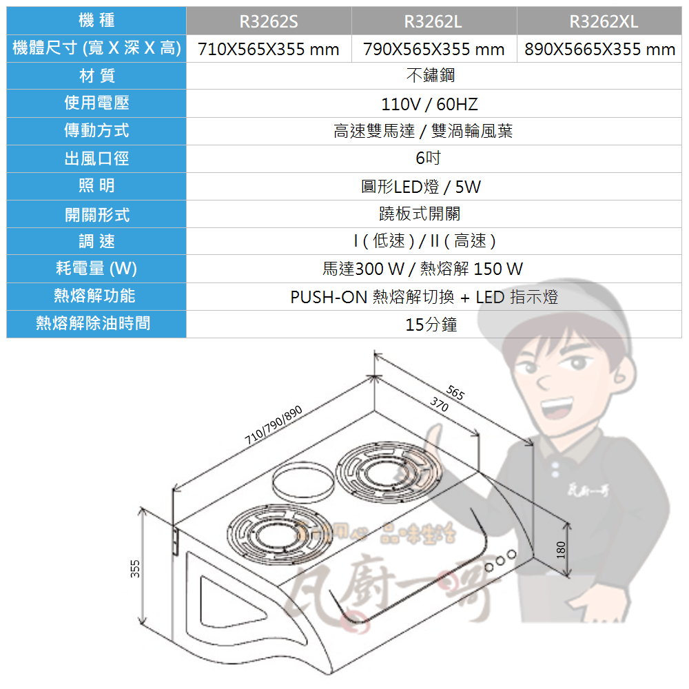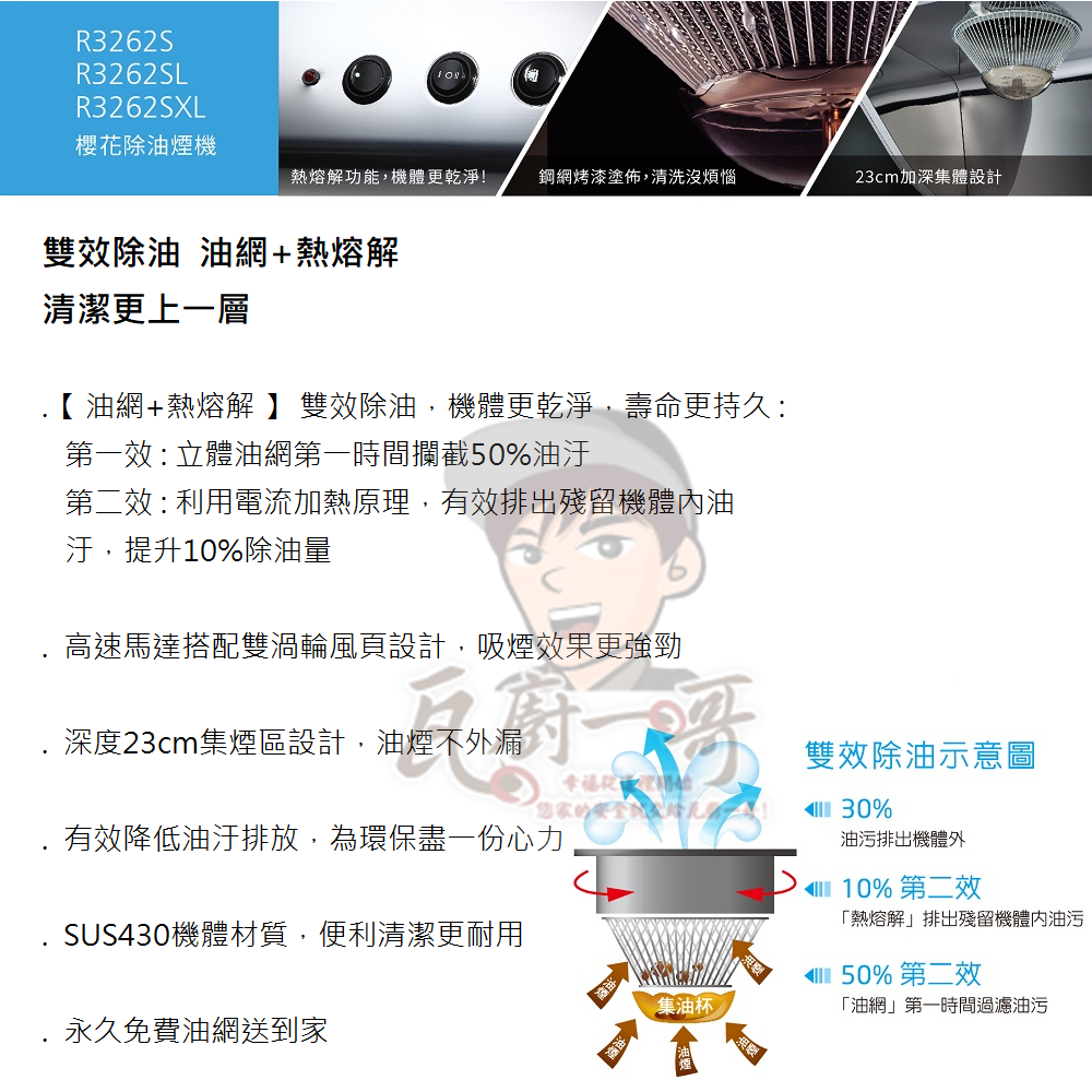 R3262 斜背式除油煙機-高速雙渦輪+雙效除油