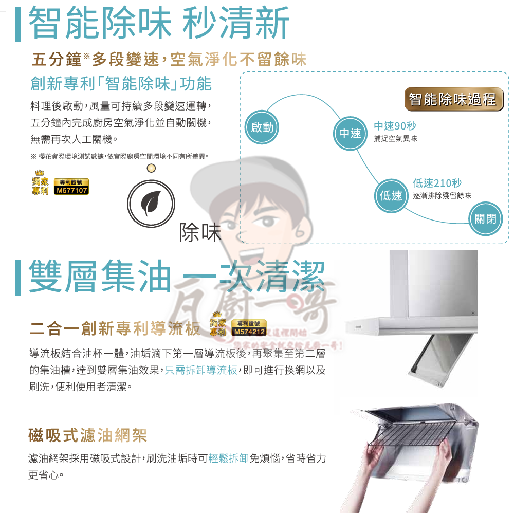 - 「智能除味」功能,可變速5分鐘多段運轉,快速除味