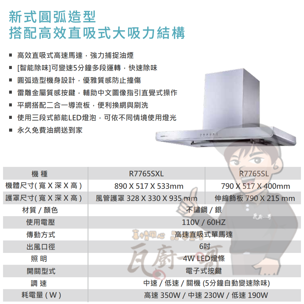 R7765SXL : 328x330x1000 mm(含面板厚度)