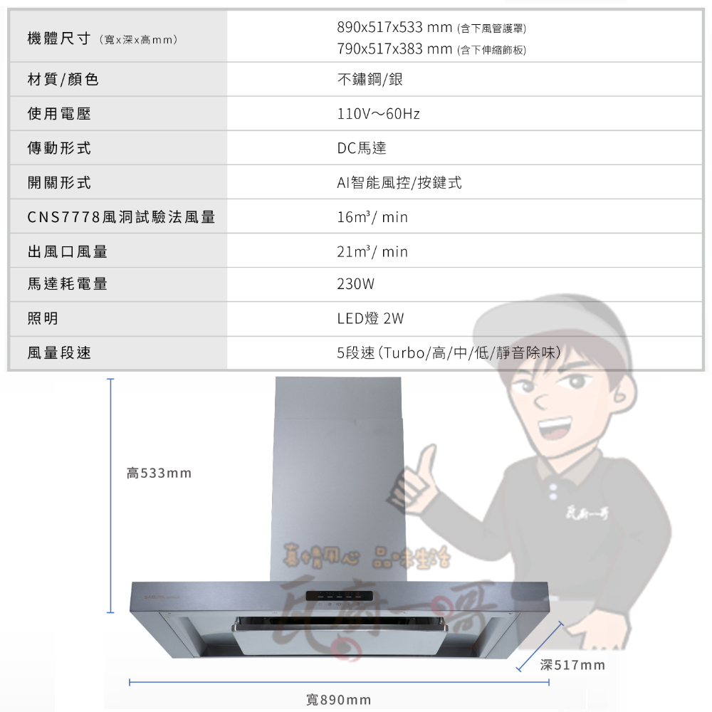 - 環吸技術擴大攏煙加速排煙,暢快排煙
