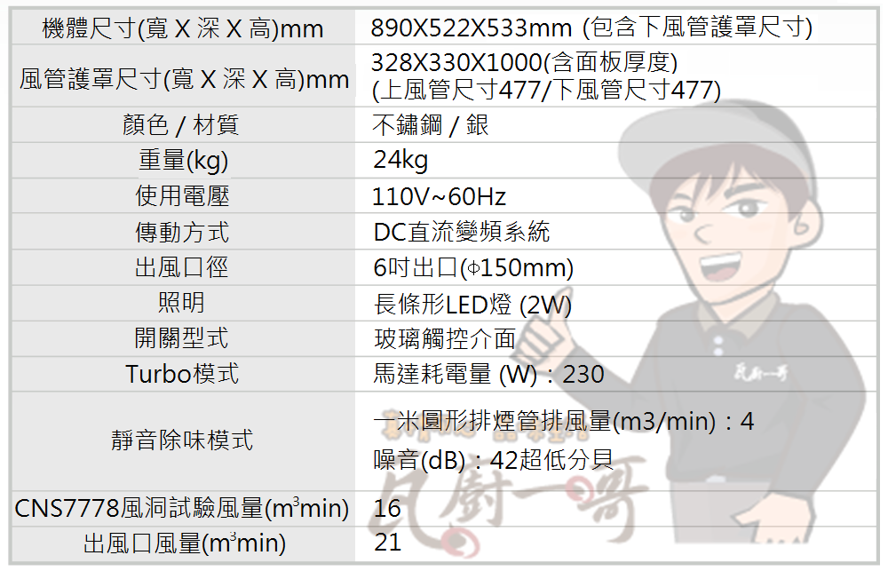 - 靜音除味設計,排除廚房餘味,常保廚房空清新