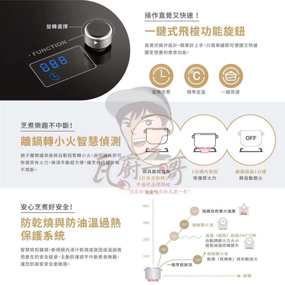 防乾燒與油溫過高保護,杜絕危機