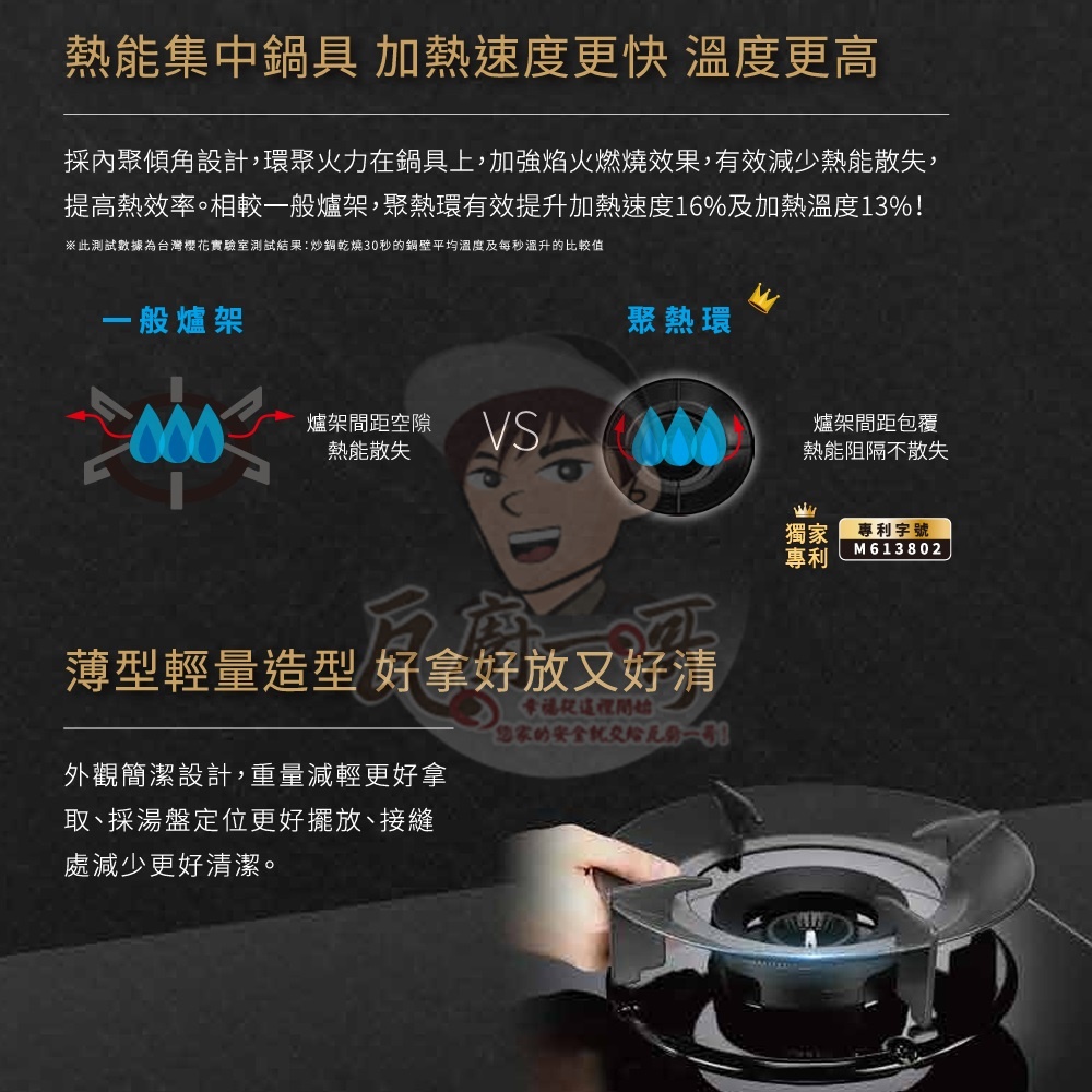 - 新式聚熱環設計,熱能集中不散失