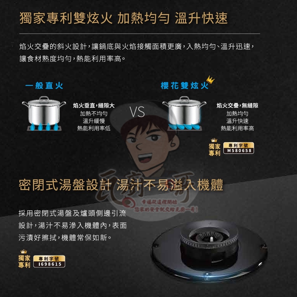 - 創新專利雙炫火,加熱均勻更高效