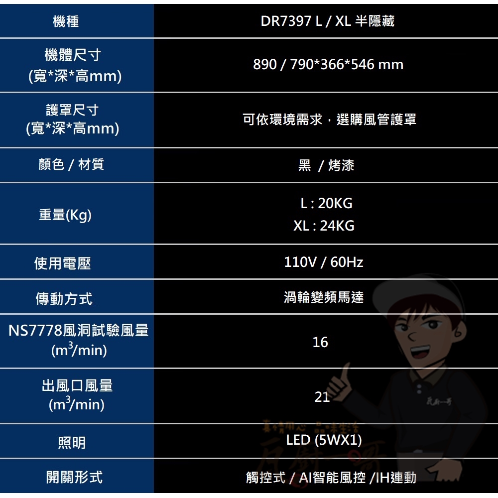 DR7397 近吸除油煙機- 渦輪變頻 AI風控系列
