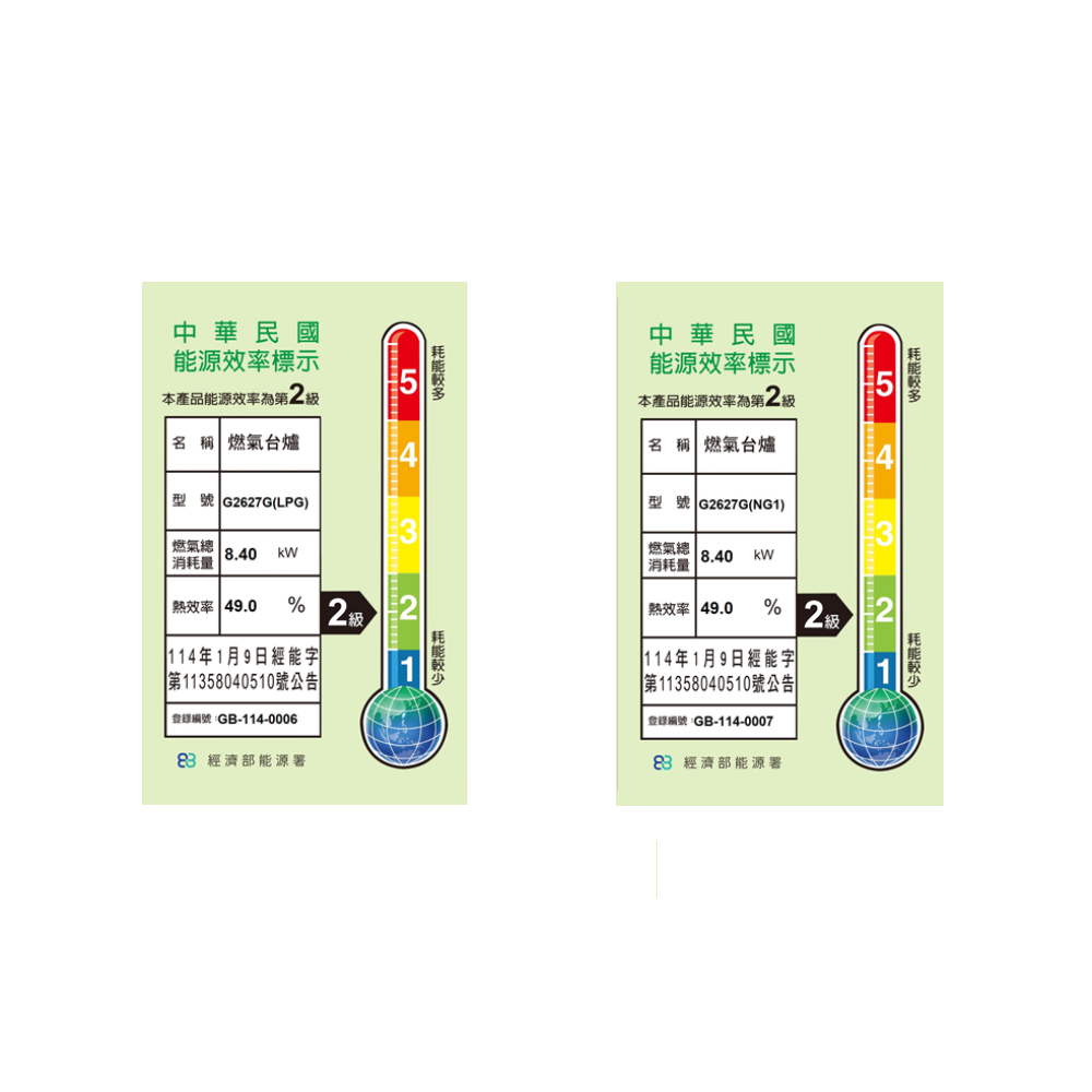 LPG共8.4kW (0.61 kg/h) / NG共8.4kW (7,224 kcal/h)