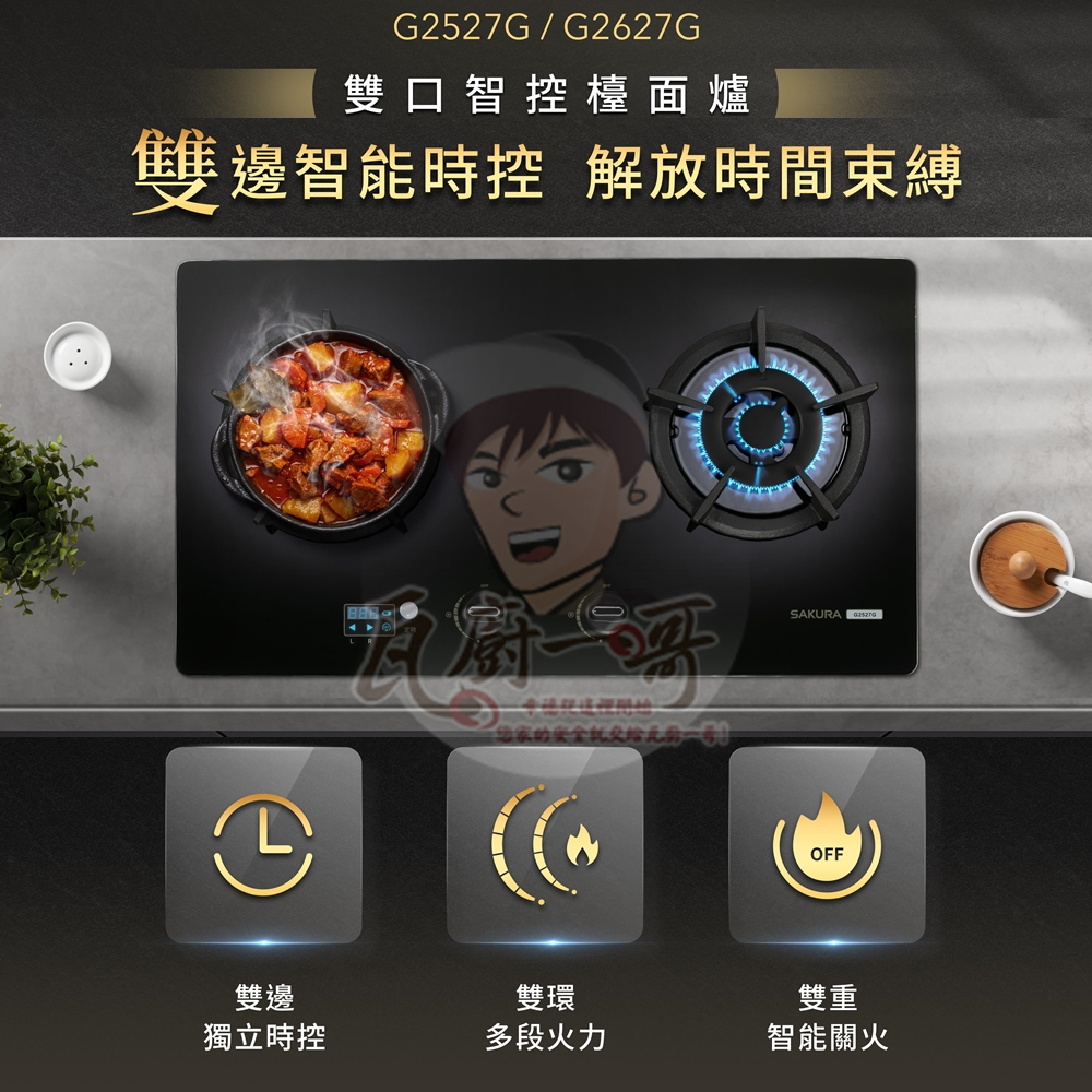 G2627G 二口大面板智控易清檯面爐