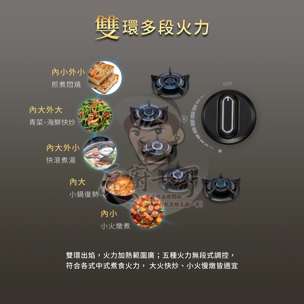 雙環5種火力,符合中式料理