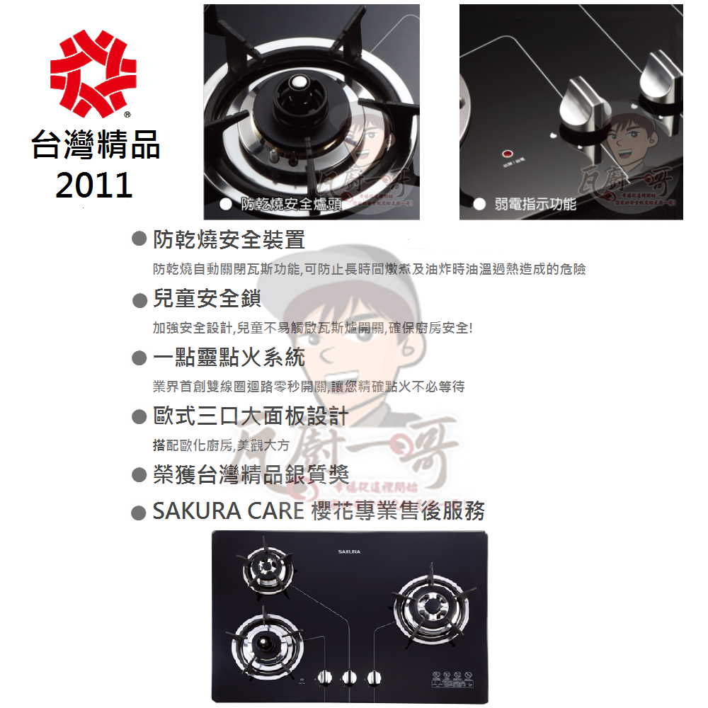 - 熄火安全裝置,杜絕瓦斯外漏風險