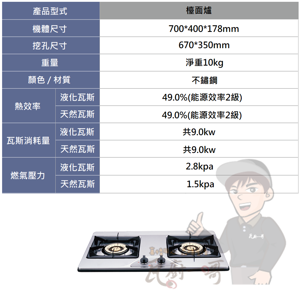 - 熄火安全裝置,杜絕瓦斯外漏風險
