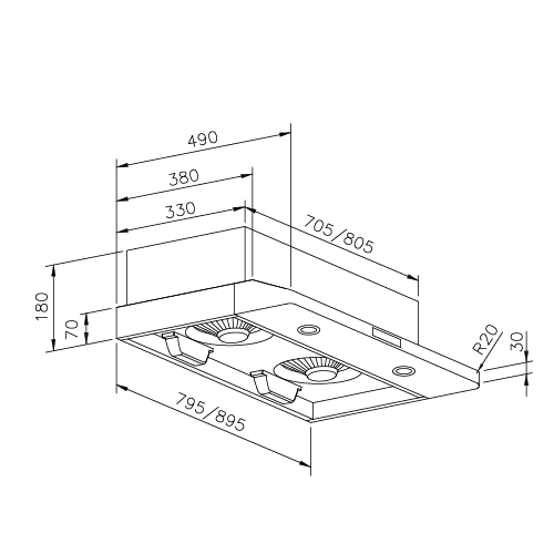| 尺寸 | 795×490×180 ㎜ | 895×490×180 ㎜ |